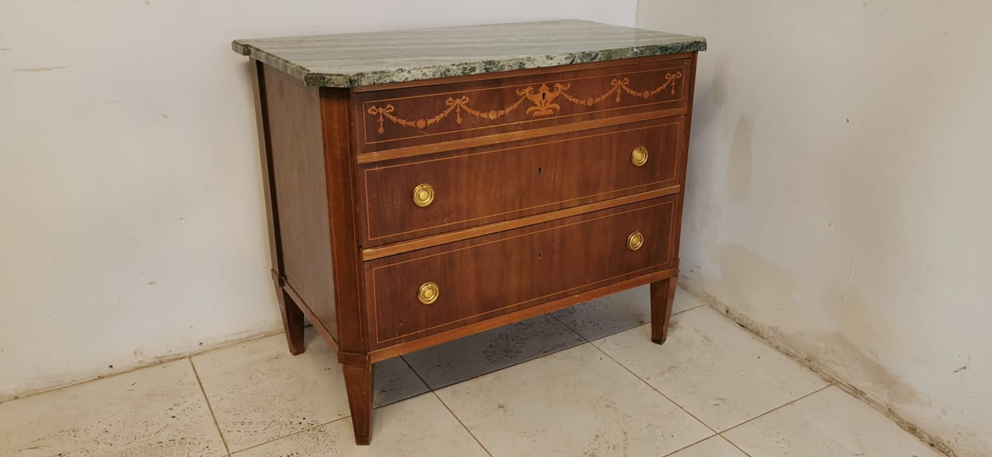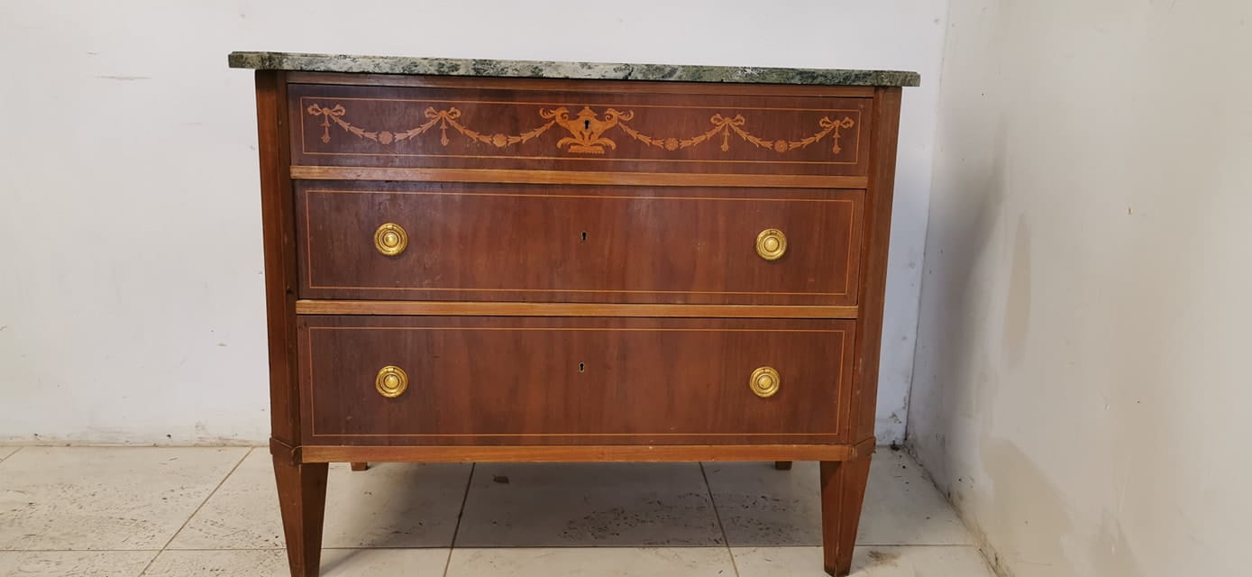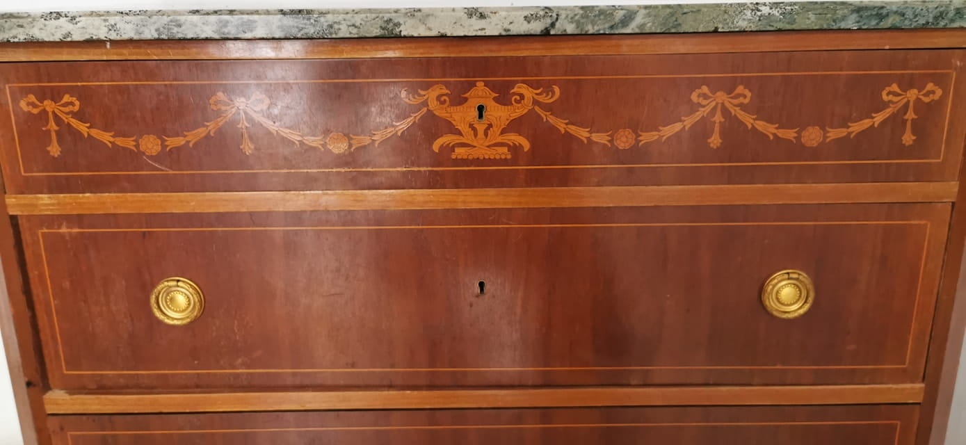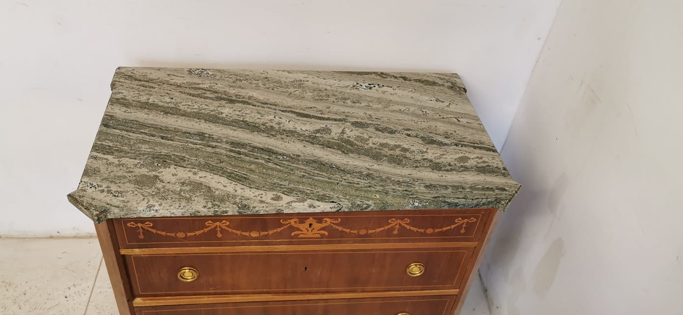 Komoda 3 szuflady mahoniowa intarsja, blat marmurowy