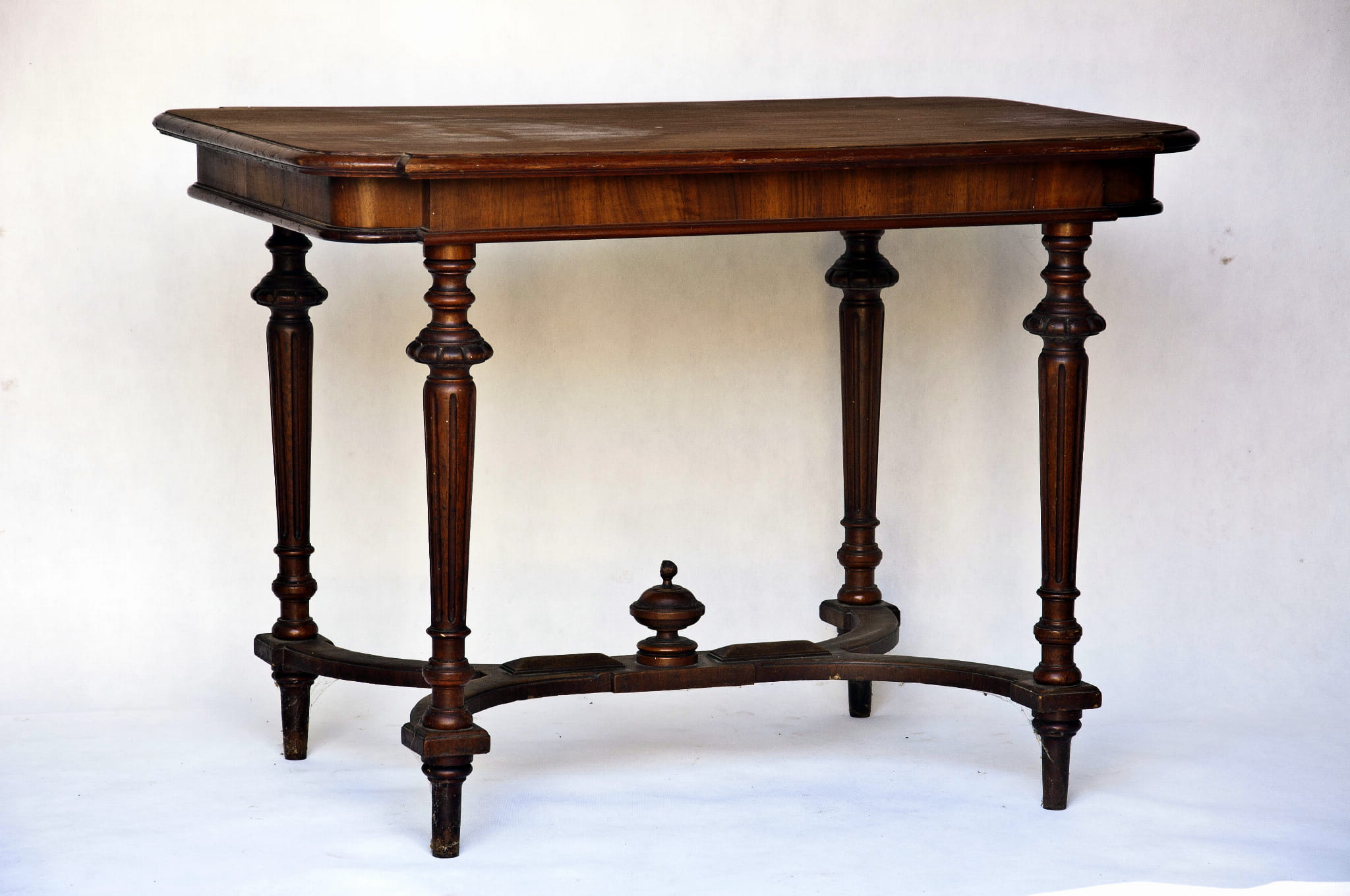 wsparty na czterech nogach, złączonych dwiema ozdobnymi listwami w kształcie litr U,