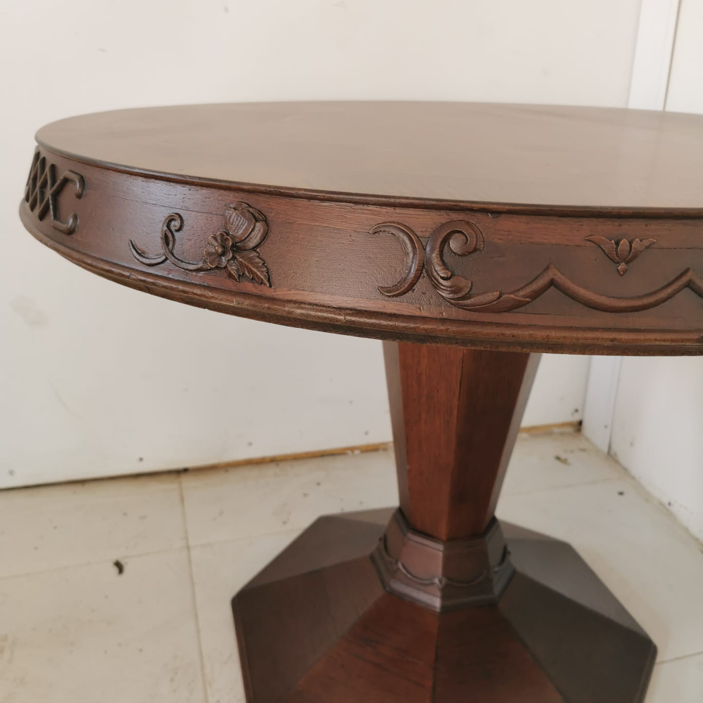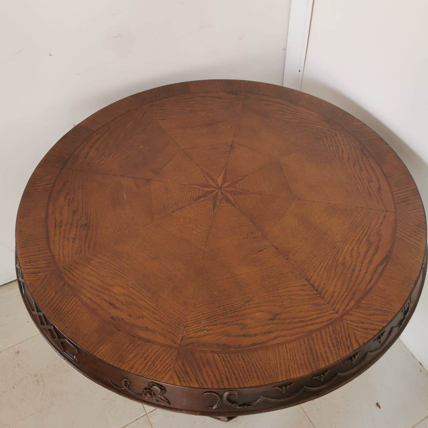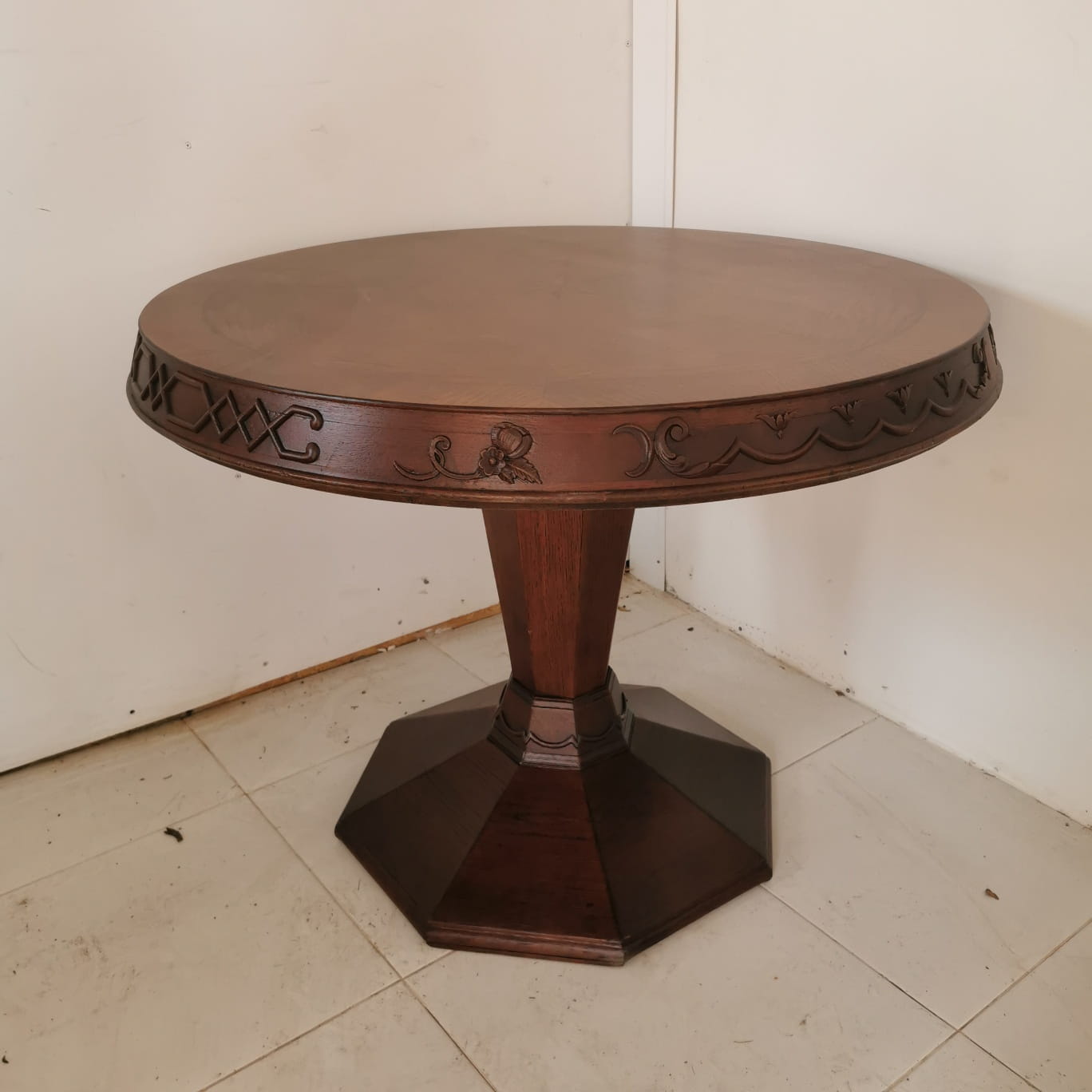 Stolik dębowy z intarsją